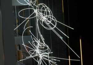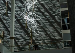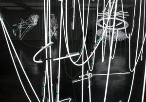 Cerith Wyn Evans‘ conceptual practice explores the way that ideas can be communicated through form, incorporating a diverse range of media including installation, sculpture, photography, film and text. He began his career as a filmmaker producing short, experimental films and collaborative works, but since the 1990s has created artworks that deal with language and perception, focusing with precise clarity on their manifestation in space. Evans employs strategies of exhibition making that are often site-specific, viewing exhibitions as a catalyst to produce a reservoir of possible meanings and discursive experiences.