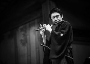 Yukihiro Isso was born into the renowned Isso family which has specialised in playing the Nohkan flute for over 500 years. One of his first experiments, which greatly excited him, occurred as a schoolboy when he worked out a technique to play Vivaldi. The experiments continued and he subsequently played a more complicated Bach flute sonata which demands much acrobatic finger-crossing on the Nohkan flute. These experiments shaped Yukihiro’s incomparable virtuosity as a Nohkan flautist today.
