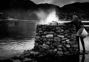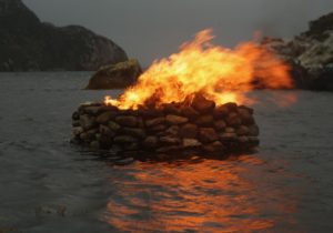 Artist Julie Brook journeys to the wildest and most remote landscapes on earth, creating work that is not only inspired by the land but cut from it. For the Firestacks, her most recent series, created in the Hebrides, Brook assembles natural elements—water, stone and fire—to create a tidal work that expresses the vital tension between gravity and time, through the seasons.