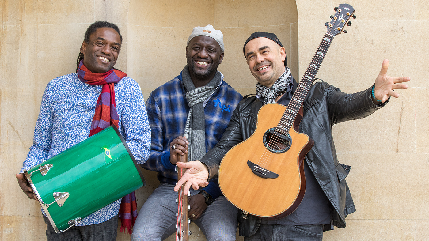 The AKA Trio is an international musical summit meeting of three world-renowned virtuosos: Antonio Forcione, Seckou Keita and Adriano Adewale.