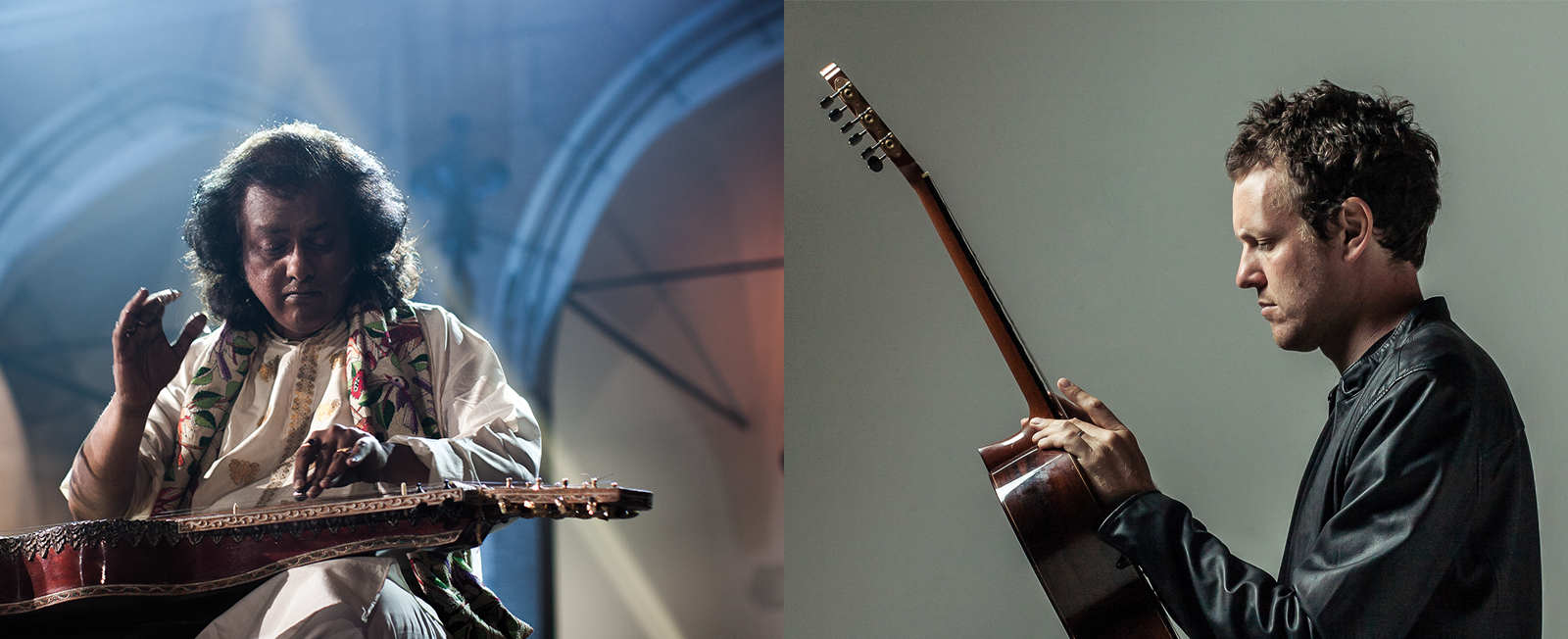 Debashish Bhattacharya and Derek Gripper have played together in India and the US, but this is their first time together in the UK. They will each perform some of their solo repertoire before their spectacular collaboration much of which will be newly composed. In the glowing acoustic of Hall One the adventures of these two guitar masters will be enthralling.