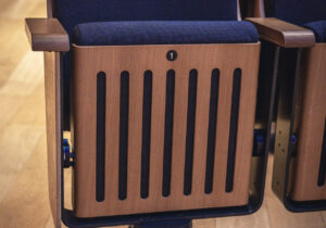In Hall One, the aisle seat in each corner of the Stalls (A1, A19, Q1, Q20) and AA30 in the Stage Balcony can be removed for wheelchair users.